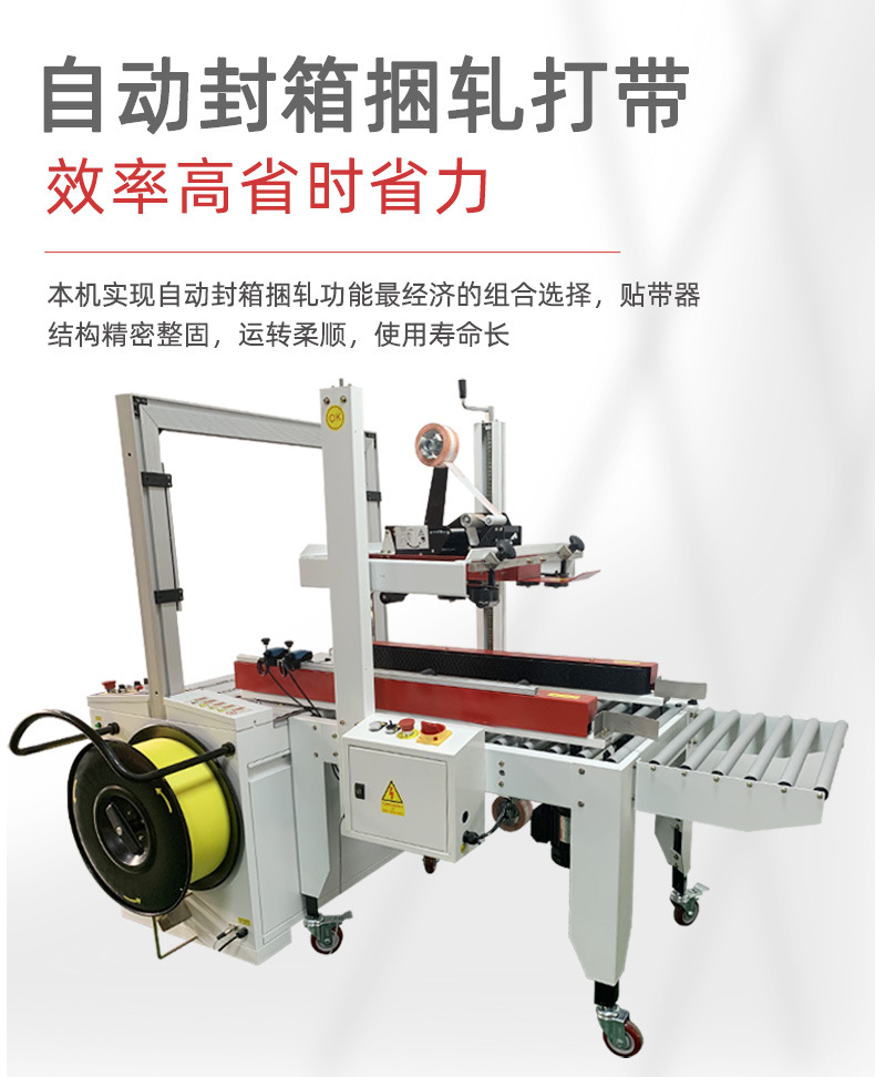 • 高效自動化:能夠自動完成封箱和打包兩個連續的包裝步驟,無需人工干預,大大提高了包裝效率。其工作速度通常可以達到每分鐘 10 - 30 箱左右,具體速度取決于箱子的大小和復雜程度,能夠滿足大規模生產和物流包裝的需求。